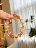 Each bead glows with a soft, golden hue—sometimes honey-like, sometimes pale champagne, sometimes shimmering with a gentle inner translucence. The natural tower-like gradients inside the stone give the bracelet depth, texture, and a luminous architectural beauty.